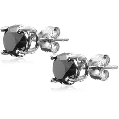 Black diamonds make a unique and fashionable statement in these classic stud earrings, fashioned from 14 karat white gold. The round, faceted diamonds have a total weight of two full carats. They are held securely in four-prong basket settings and featured on posts with friction back closures. A simple and classy choice with a little black dress, or an attractive complement to this season's bold black and white prints, these versatile earrings will quickly earn their place at the top of your jewelry box.
